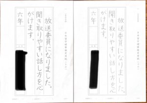 こんにちは☆岡山県総社市にある日本習字 たけのこ教室です!4月から通い始めてくれた6年生のSちゃん!最初から綺麗なまとまった字を丁寧に書くことが出来ていました!(写真右)1ヶ月かけて⚪︎