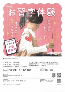 岡山県総社市にある日本習字 たけのこ教室です!!5月31日(土)、6月1日(日)に体験会を行います!!この度貴重な土日開催です☆・気になっている方・お仕事の都合でなかなか体験に行く日がなかったという方
